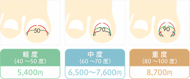 そのときの爪が巻いている角度を巻き爪度数表でチェック!!